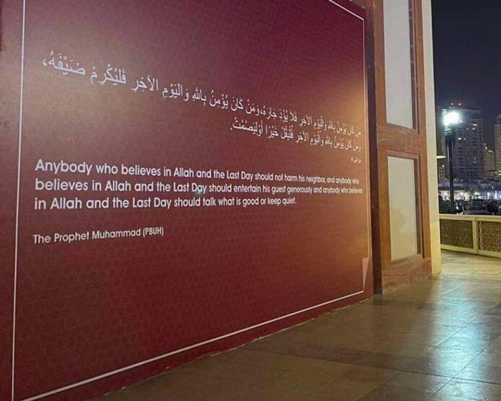 الدوحة/PNN- كشفت اللجنة المنظمة لبطولة كأس العالم 2022 عن عدة جداريات نشرتها في شوارع العاصمة القطرية الدوحة، تتضمن أحاديث نبوية مترجمة باللغة الإنجليزية، وذلك مع اقتراب انطلاق المونديال.