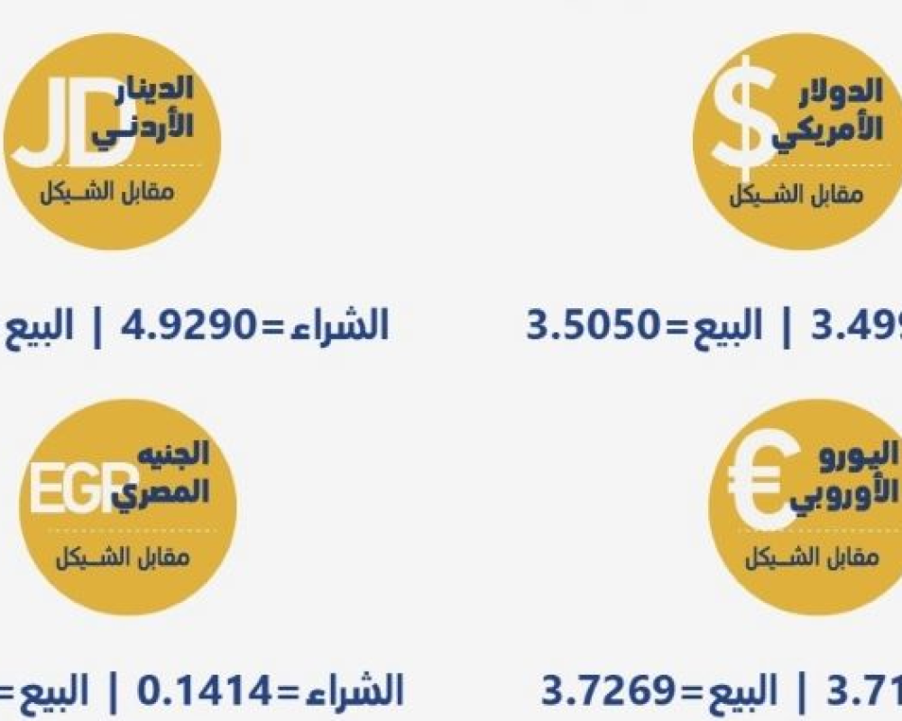 رام الله 26-12-2022 وفا- جاءت أسعار العملات مقابل الشيقل الإسرائيلي، اليوم الإثنين، حسب سلطة النقد، على النحو التالي: