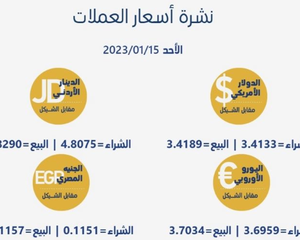 بيت لحم/PNN-  جاءت أسعار العملات مقابل الشيقل الإسرائيلي، اليوم الأحد، حسب سلطة النقد، على النحو التالي: