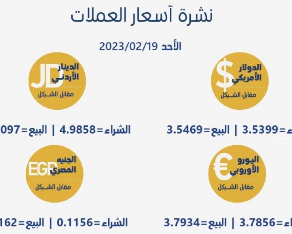 رام الله/PNN- جاءت أسعار العملات مقابل الشيقل الإسرائيلي، اليوم الأحد، حسب سلطة النقد، على النحو التالي: