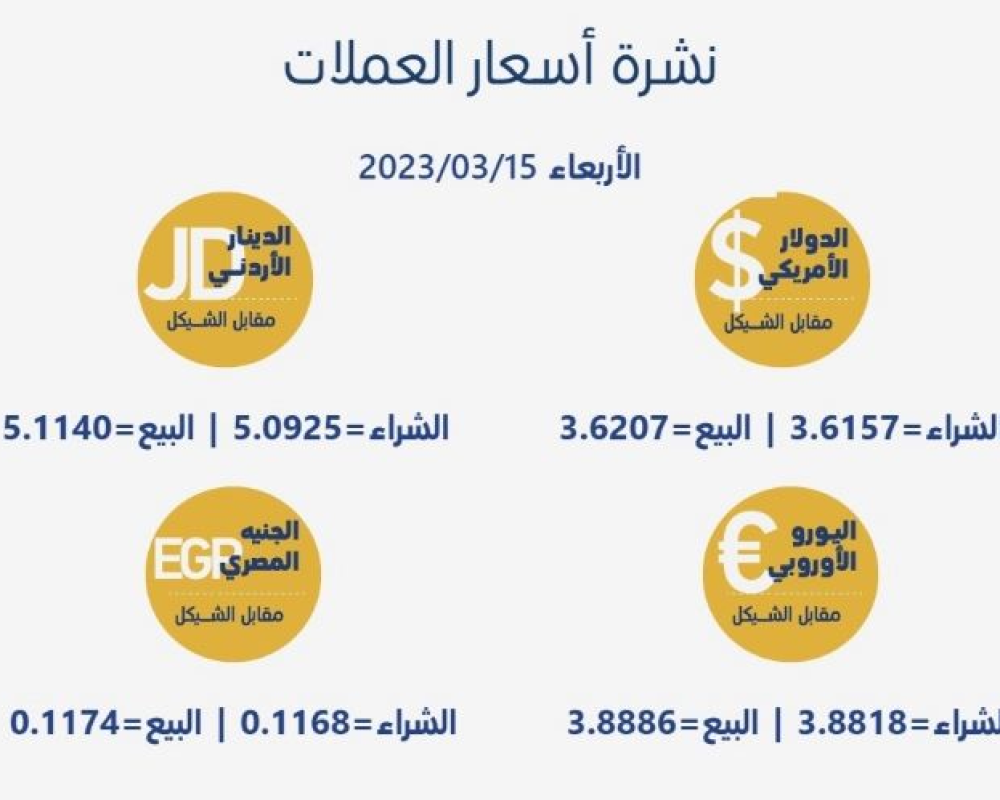 رام الله/PNN- جاءت أسعار العملات مقابل الشيقل الإسرائيلي، اليوم الأربعاء، حسب سلطة النقد، على النحو التالي: