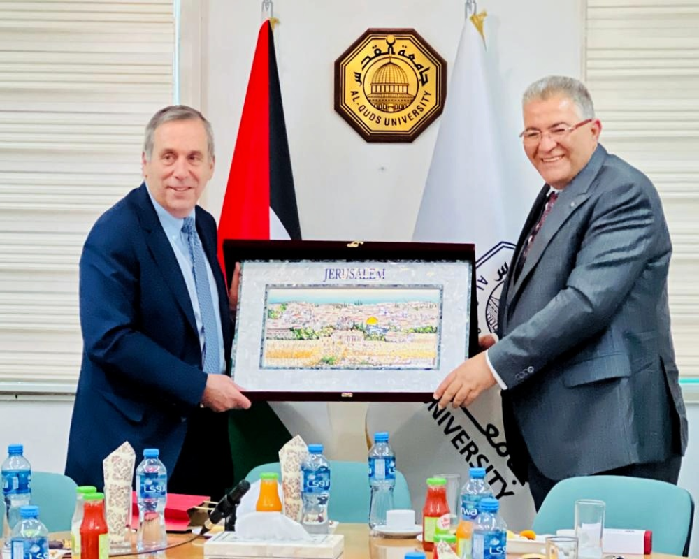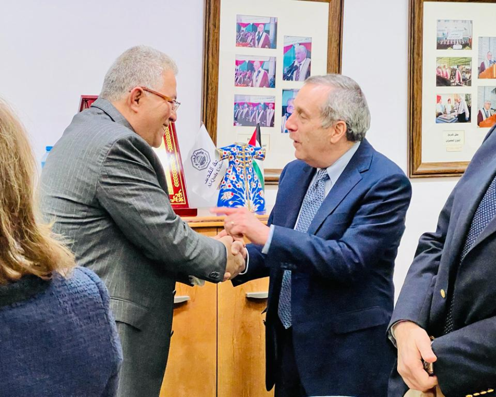 القدس/PNN- استقبل رئيس جامعة القدس أ.د. عماد أبو كشك وفدًا من جامعة هارفارد الأمريكية ممثلًا برئيسها البروفيسور لورانس باكو، وذلك في حرم الجامعة الرئيس في زيارة أولى فريدة لرئيس هارفارد العريقة إلى جامعة فلسطينية، بحضور ثلة من نواب الرئيس ومساعديه.