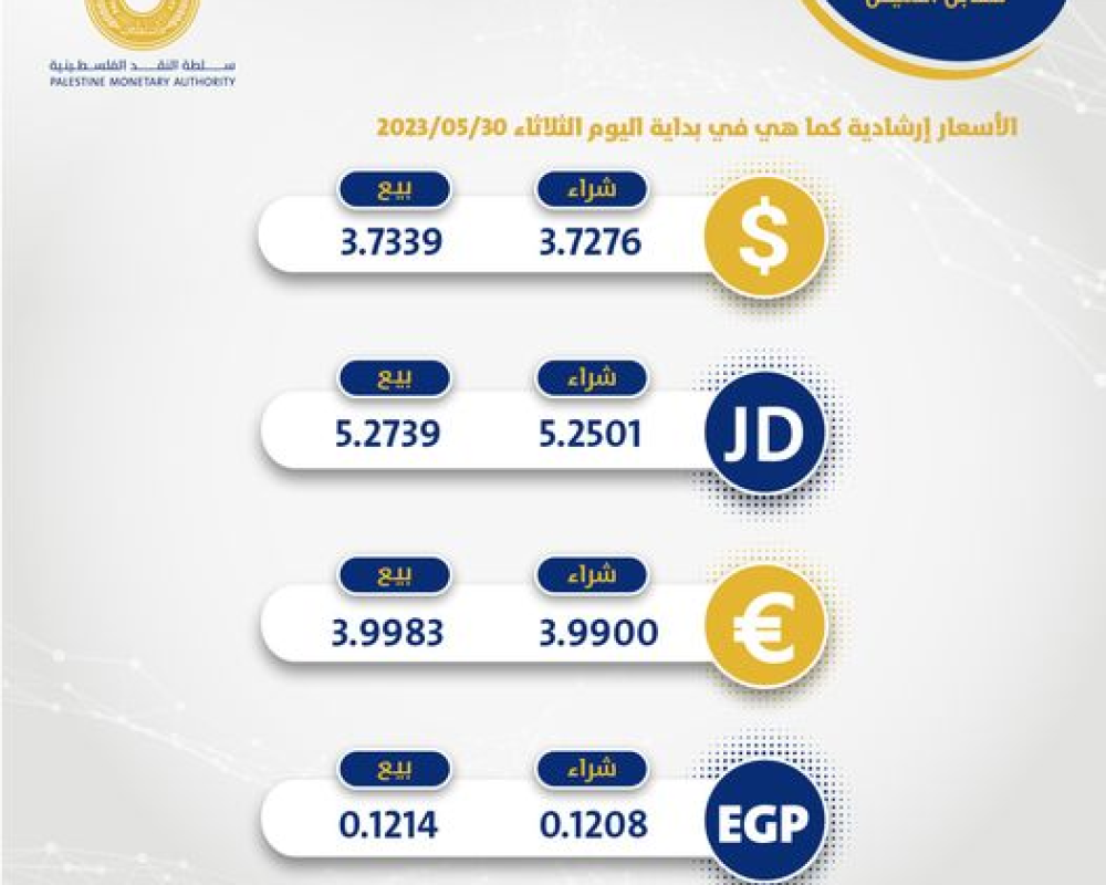 رام الله/PNN- جاءت أسعار صرف العملات مقابل الشيقل "الإسرائيلي"، اليوم الثلاثاء، في أسواق فلسطين على النحو التالي: