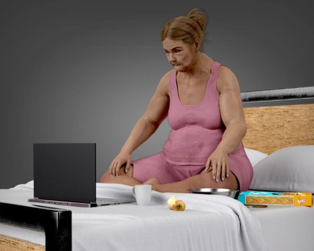 ثم قاموا بعد ذلك بتجنيد مصمم لإنشاء نموذج ثلاثي الأبعاد لشخص تطور جسمه بسبب الاستخدام المستمر "لأجهزة الكمبيوتر المحمولة والهواتف الذكية، والوضعية السيئة للجلوس والنظام الغذائي غير الصحي".