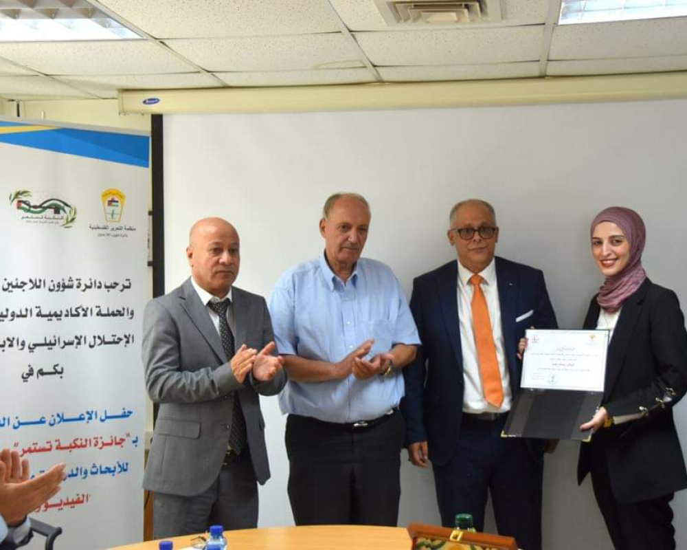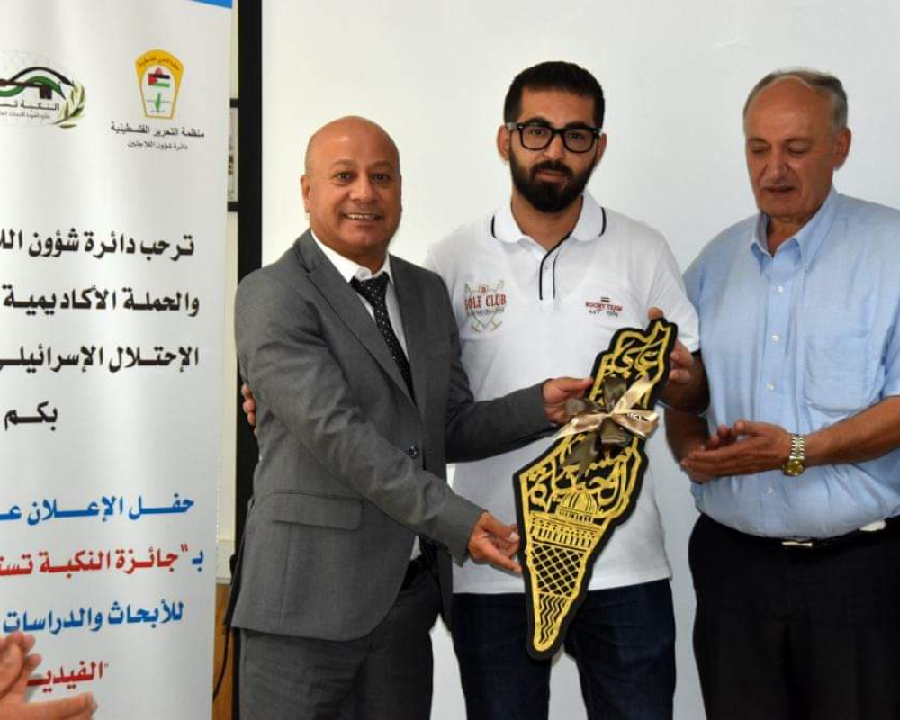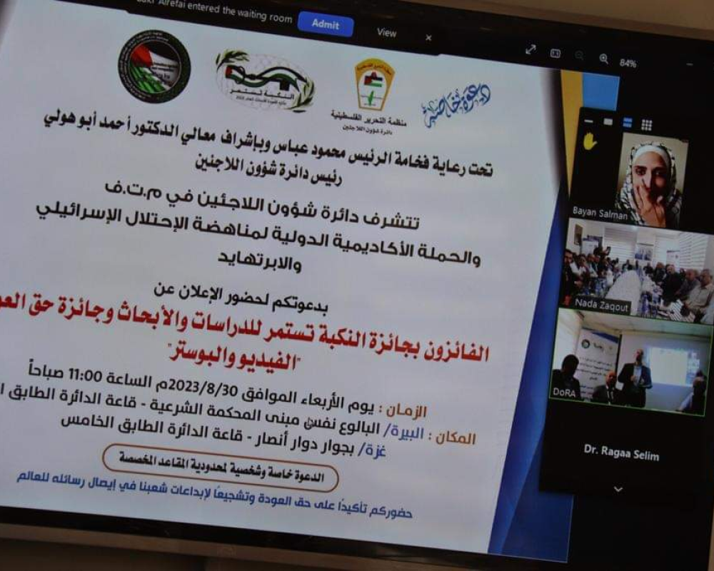 جاء ذلك في حفل أقامته دائرة شؤون اللاجئين تحت رعاية رئيس دولة فلسطين محمود عباس، بالتزامن في قاعتي المؤتمرات بمقرها بمدينتي رام الله وغزة، بمشاركة الفائزين من الضفه الغربية، والقدس، وقطاع غزه، وسوريا، ولبنان، ومصر، عبر تقنية الفيديو كونفرانس.