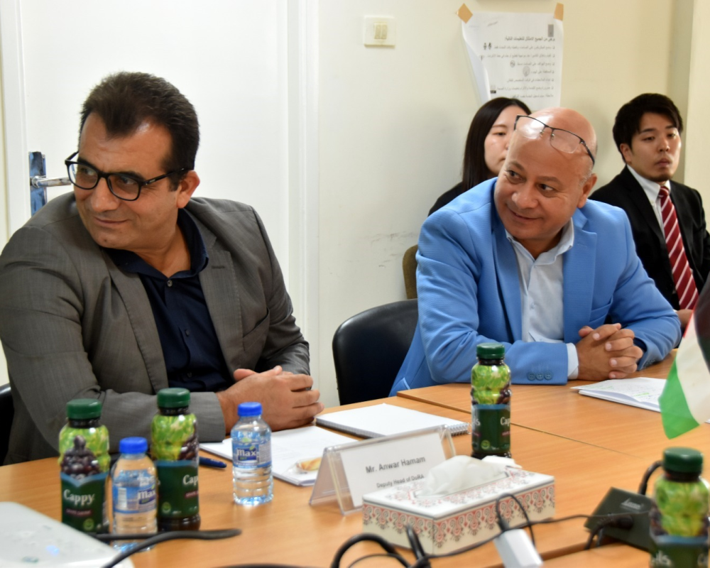 وجرى اللقاء بحضور رئيس دائرة شؤون اللاجئين د. أحمد أبو هولي، و وكيل الدائرة أنور حمام ومدير عام دائرة بناء السلام والبنية التحتية في المقر الرئيسي لجايكا، ورئيس مكتب جايكا فلسطين هوشي آبي وفريق خبراء جايكا والفريق النظير.
