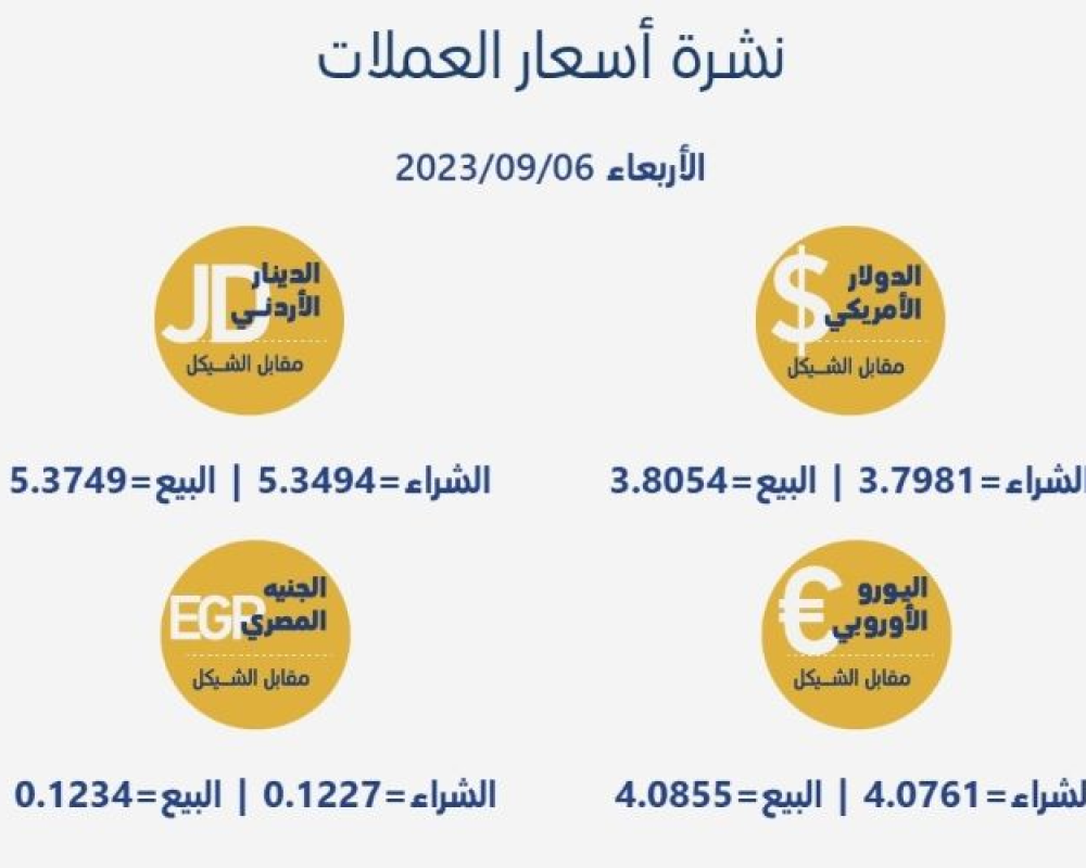 رام الله/PNN- جاءت أسعار العملات مقابل الشيقل الإسرائيلي، اليوم الأربعاء، حسب سلطة النقد، على النحو التالي: