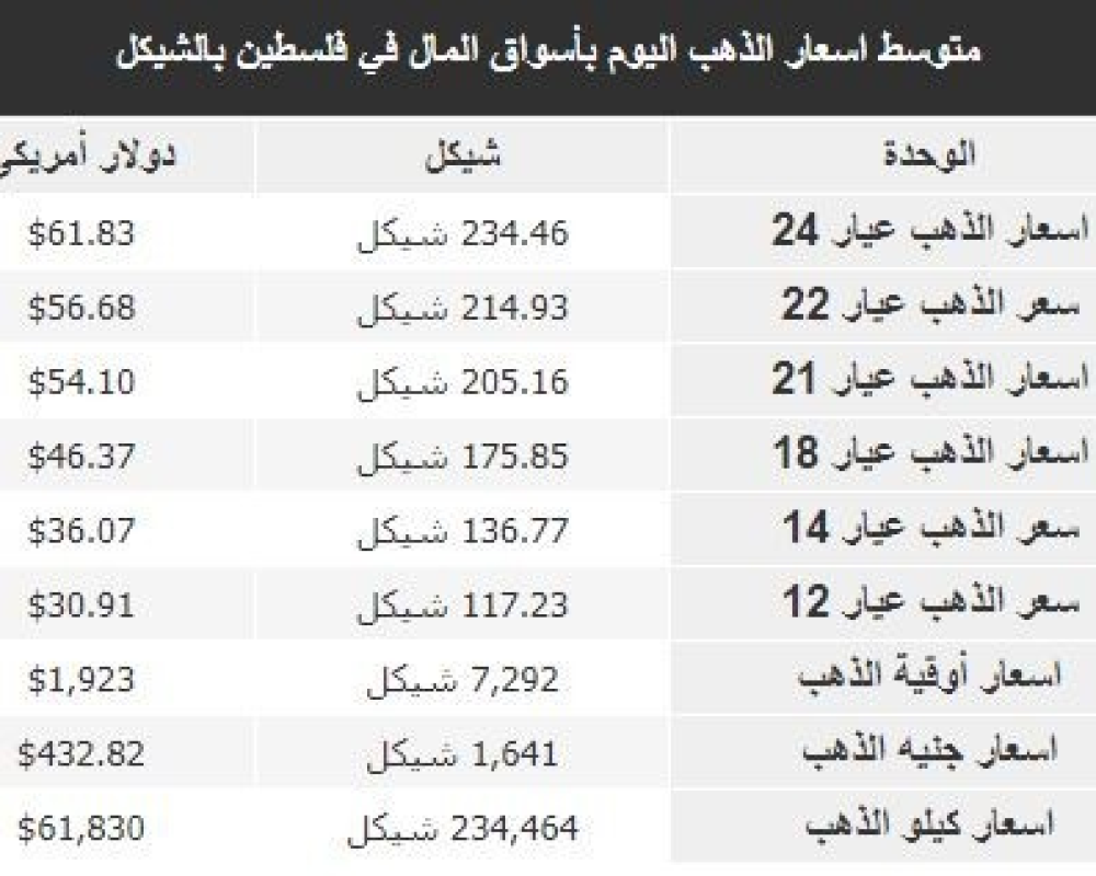 بيت لحم/PNN- جاءت أسعار الذهب في أسواق فلسطين، اليوم الثلاثاء 12 سبتمبر 2023، بالشيكل الإسرائيلي والدولار الأمريكي على النحو التالي:-