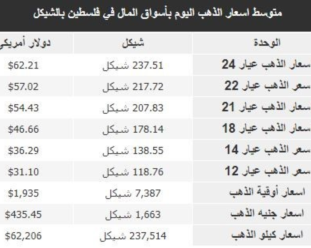بيت لحم/PNN- جاءت أسعار الذهب في أسواق فلسطين، اليوم الثلاثاء 19 سبتمبر 2023 وفقًا للشيكل "الإسرائيلي" والدولار الأمريكي، على النحو التالي: -