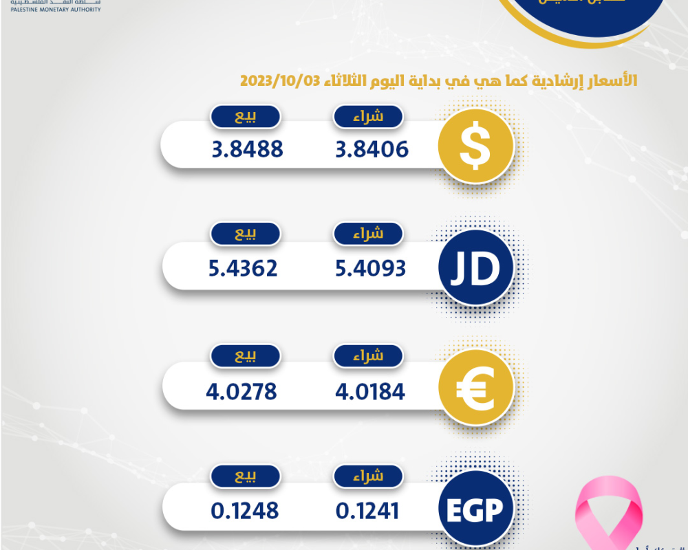 رام الله/PNN- جاءت أسعار صرف العملات، اليوم الثلاثاء، حسب سلطة النقد على النحو الآتي: