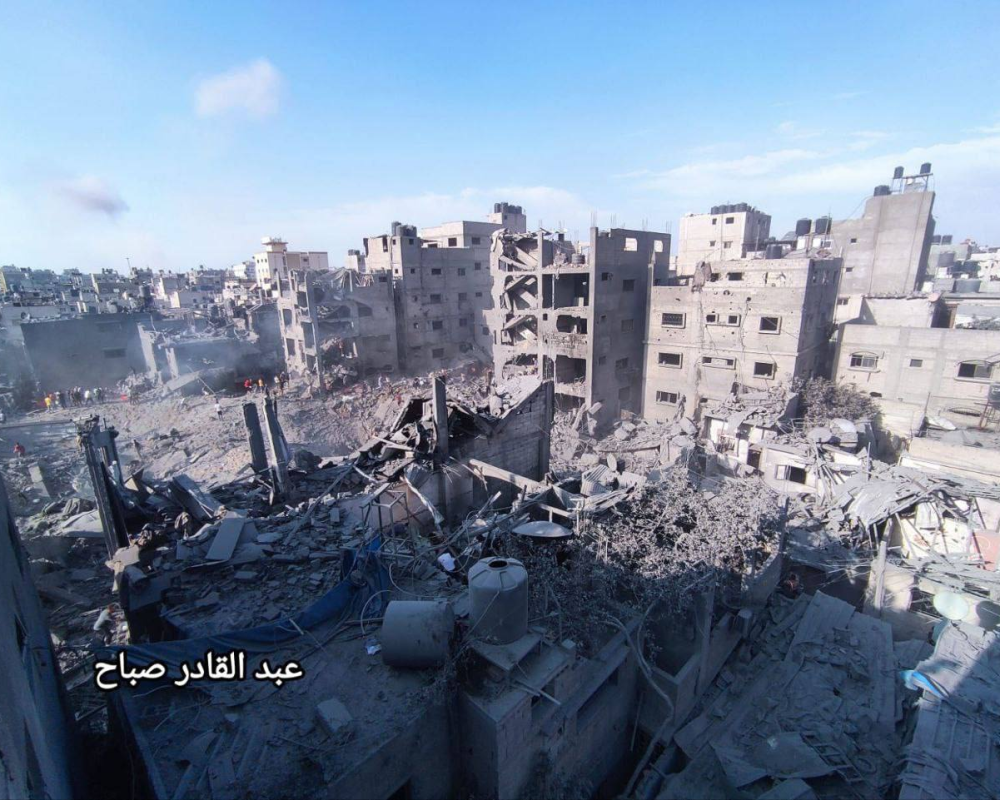 من جهته قال الصحفي رمزي ابو العصمان ان قوات الاحتلال ابادت الحي بعد ان قامت بقصف قلب معسكر حباليا وهي المنطقة التي تعد الاكثر كثافة سكانية.