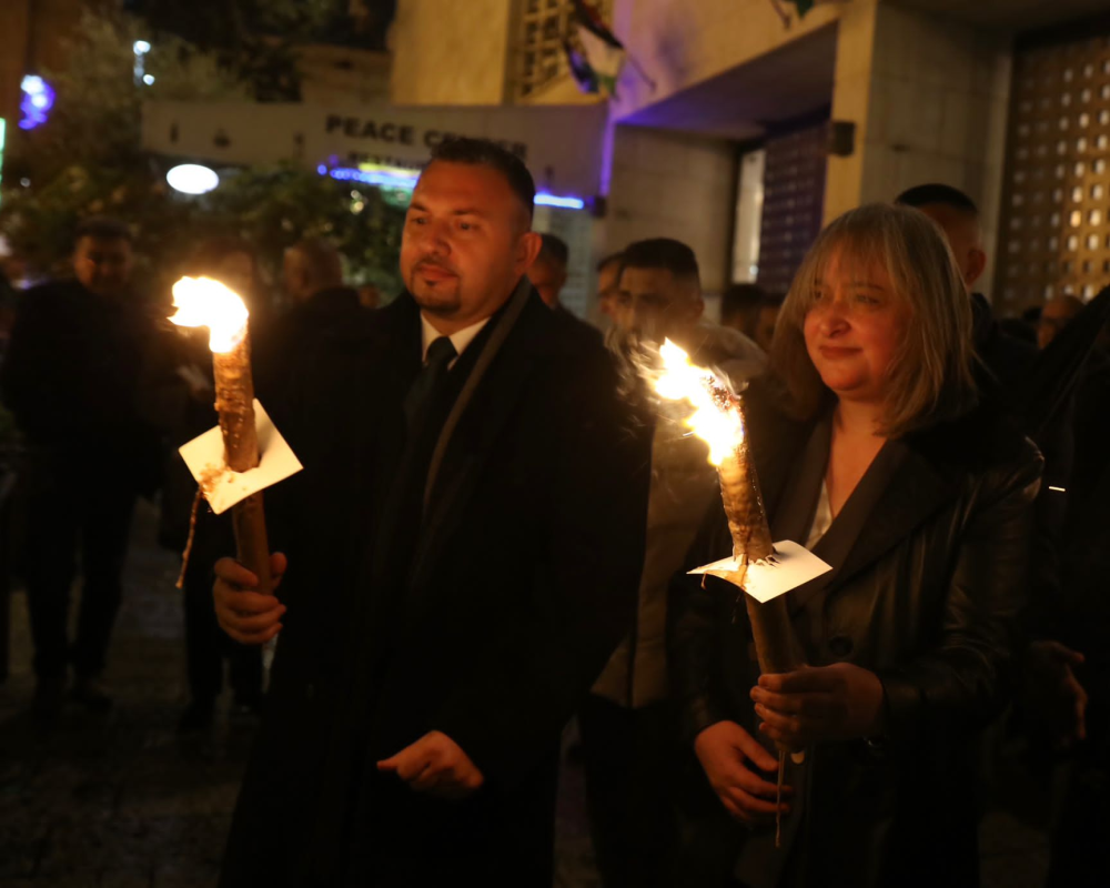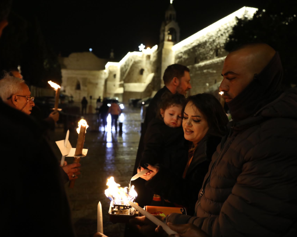 وقالت، من هنا ومن ساحة الميلاد فأنني ادعوا العالم لان ينصروا الحق ويقفوا ضد الظلم وان يعملوا على إلزام حكومة الاحتلال بوقف إطلاق النار والكف عن قتل الاطفال والنساء والعمل على احلال سلام عادل وشامل يضمن لشعبنا ان يحيا ككل شعوب الارض بحرية وكرامة وعدل على ارضه تحت رايته ليقيم عليها دولته المستقلة.