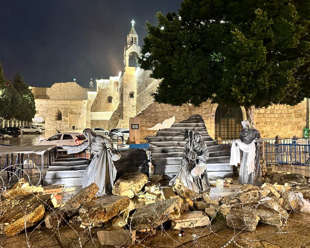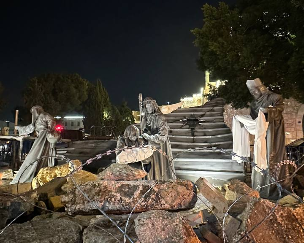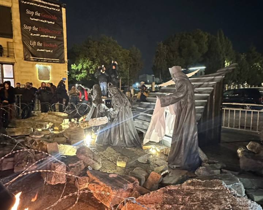 بيت لحم/PNN- لإيصال الصوت الفلسطيني في ظل العدوان المتواصل ومن مدينة مهد السلام، بيت لحم، اطلقت بلدية بيت لحم وفعاليات ومؤسسات المدينة فعاليات وقفة "الميلاد تحت الأنقاض" التي تضمنت افتتاح مغارة الميلاد تحت القصف.