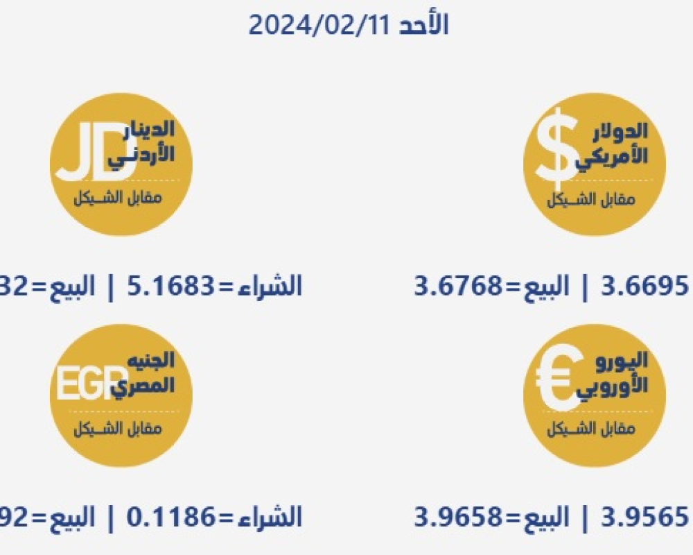 رام الله/PNN- جاءت أسعار صرف العملات مقابل الشيقل الإسرائيلي، اليوم الأحد، بحسب سلطة النقد الفلسطينية، على النحو التالي: