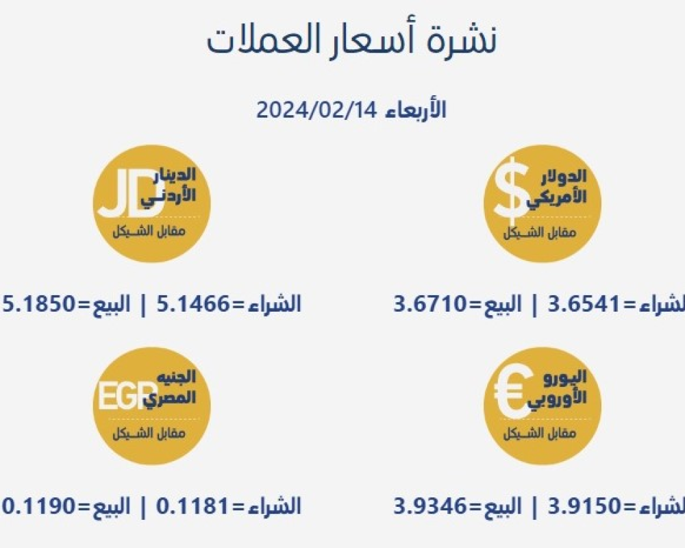 رام الله/PNN- جاءت أسعار صرف العملات مقابل الشيقل الإسرائيلي، اليوم الأربعاء، بحسب سلطة النقد الفلسطينية، على النحو التالي: