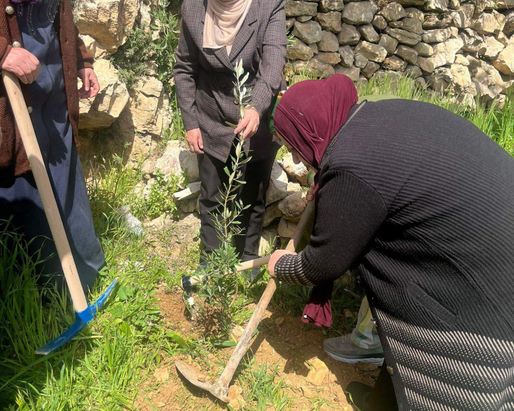 و اشتمل النشاط على زراعة أشجار الزيتون بمشاركة ٣٠ امرأة من مخيمي عايدة والعزة حيث تم زراعة العديد من الاشجار في الارض التي تعمل الجمعية على استصلاحها من خلال زراعتها ضمن اراضي مدينة بيت لحم.