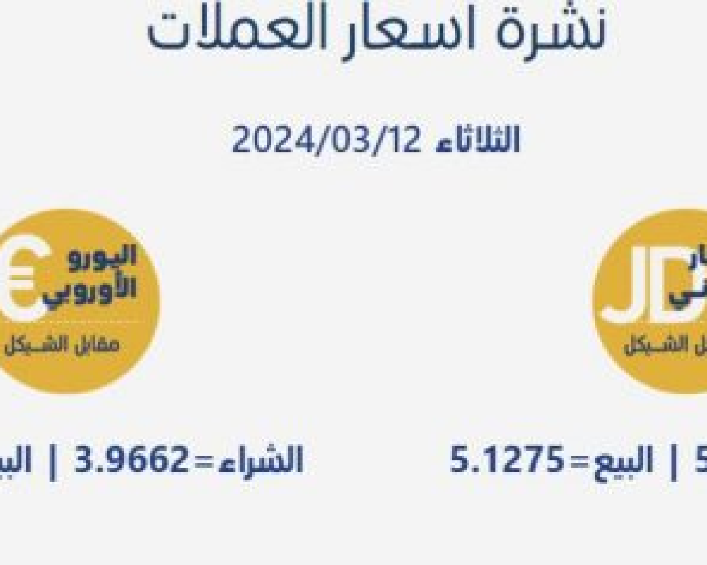 الدولار : 3.63الدينار: 5.12اليورو : 3.97الجنيه المصري : 0.074