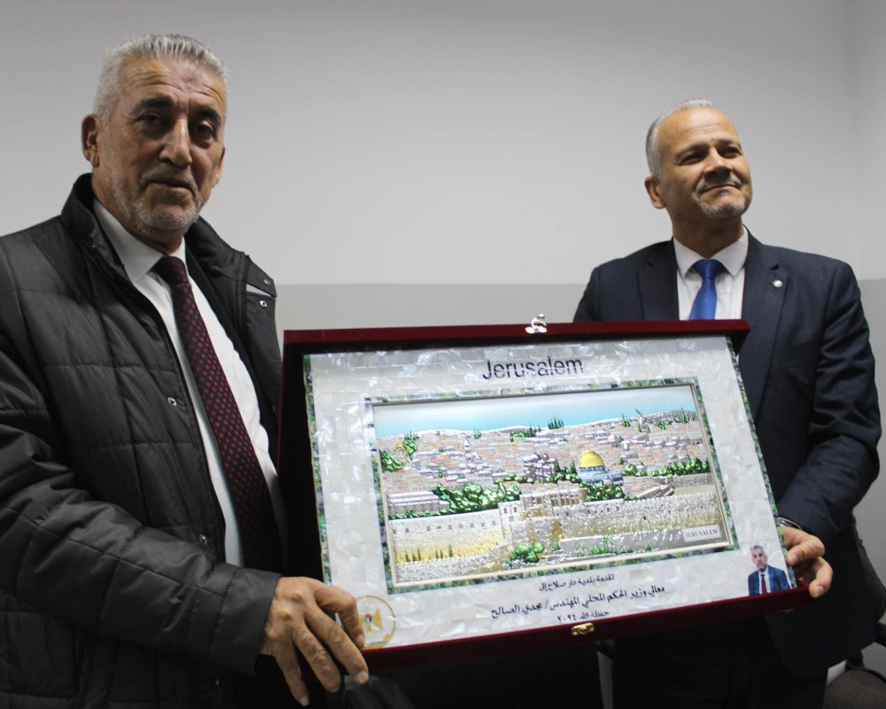 و وجه محافظ بيت لحم شكر خاص لرئيس المجلس محمود صلاح ولكافة اعضاء المجلس على ما بذلوه من جهود للانتقال بالمجلس من مجلس قروي لمجلس بلدي مهنئا اياهم وكل اهالي دار صلاح على هذا الانجاز.