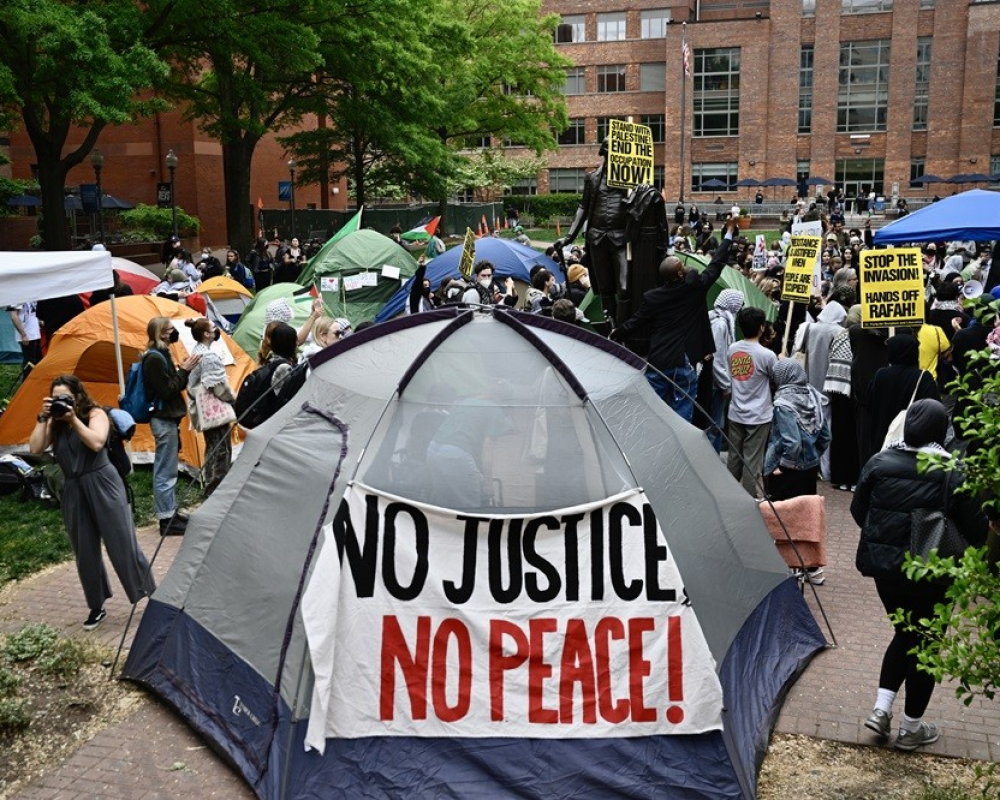 رغم ذلك، يشهد الحراك الجامعي توسّعاً. فقد أُنشئ في وقت باكر الخميس مخيّم جديد في حرم جامعة جورج واشنطن في العاصمة، حيث من المقرّر تنظيم تظاهرة.