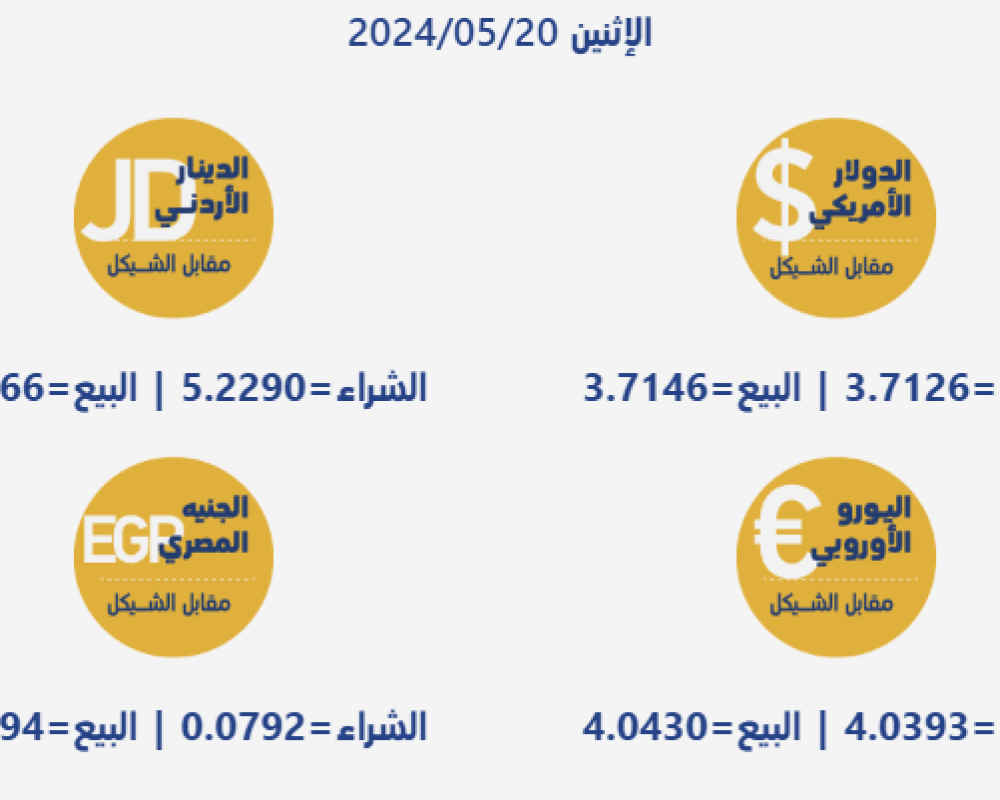أسعار العملات مقابل الشيقل اليوم الإثنين
