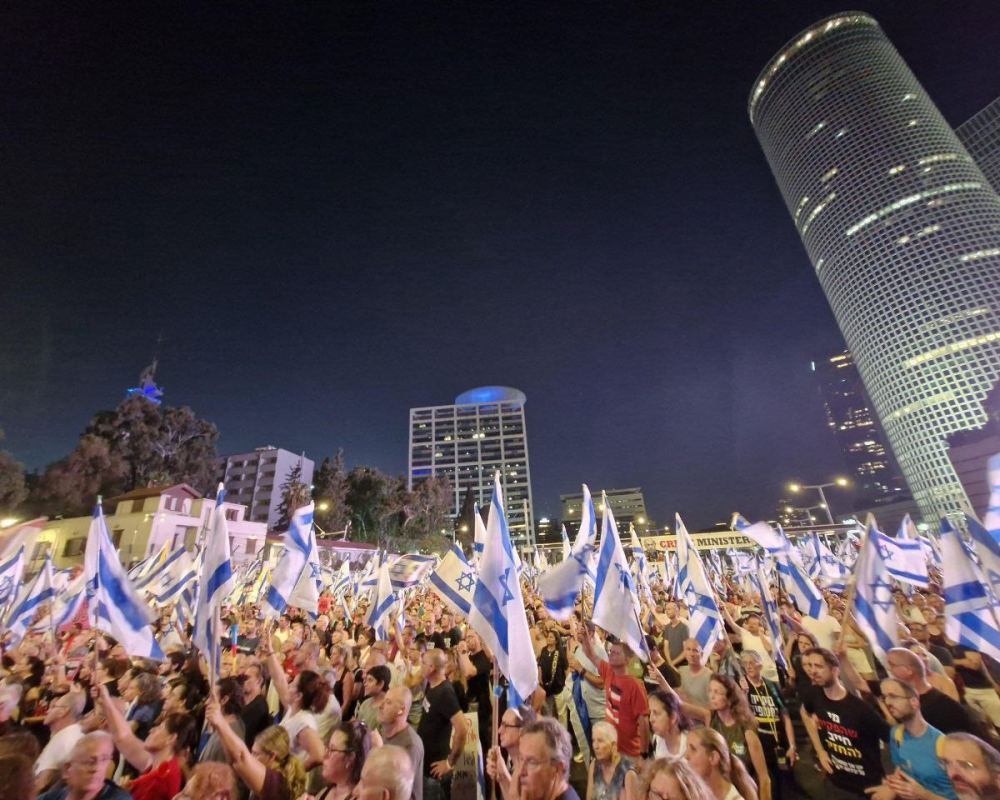تل ابيب /PNN / تظاهر آلاف الإسرائيليين، اليوم السبت، في عدة مناطق، منها تل أبيب، للمطالبة بإسقاط حكومة بنيامين نتنياهو، وإجراء انتخابات مبكرة، وإبرام صفقة تبادل.