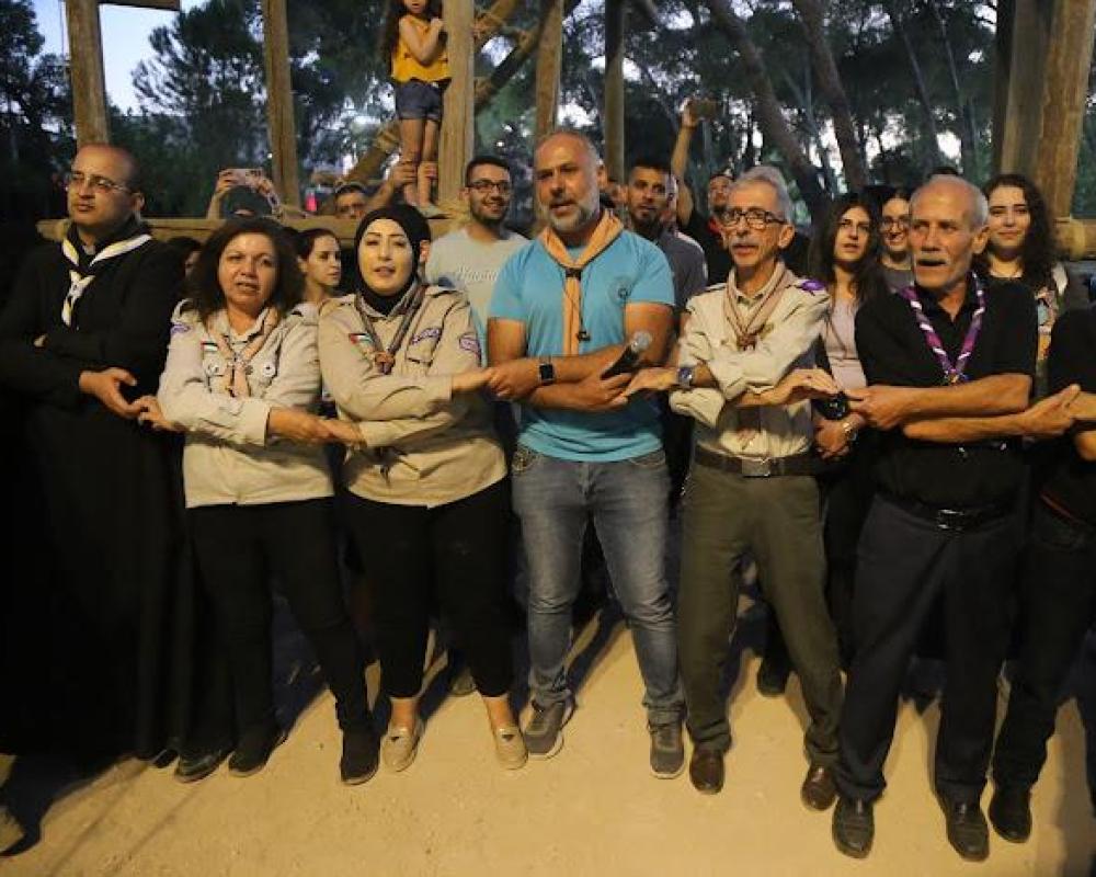 وفي نهاية الحفل توقّف الجميع حول سارية العلم لإنزاله للمرة الأخيرة خلال المخيم وتسليمه لقائد المجموعة، ونشيد "هيّا إلى اللقاء معاً".