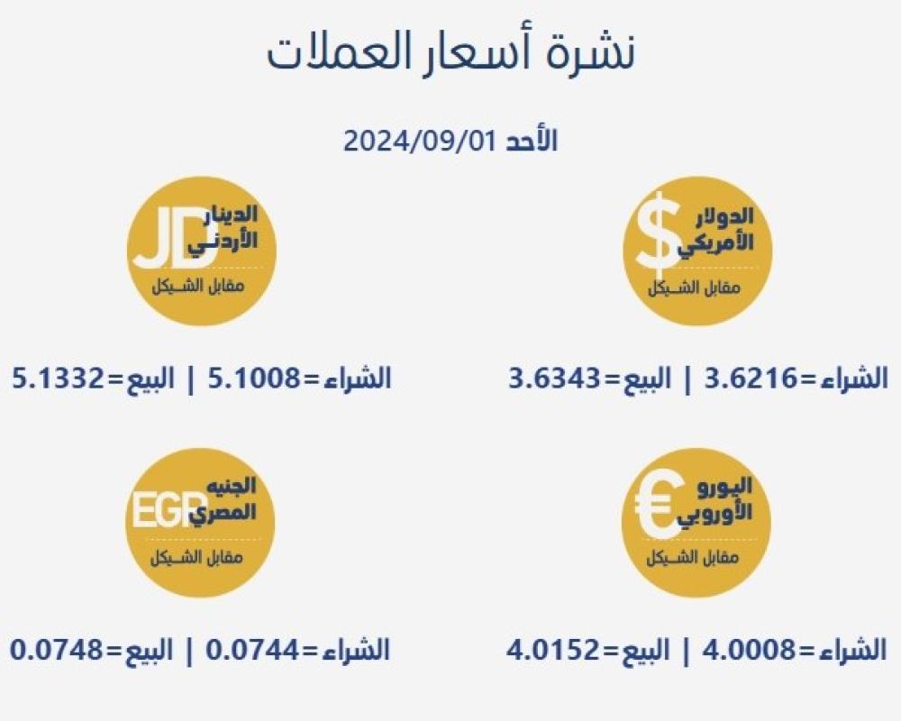 رام الله/PNN- جاءت أسعار صرف العملات مقابل الشيقل، اليوم الأحد، بحسب سلطة النقد الفلسطينية، على النحو التالي: