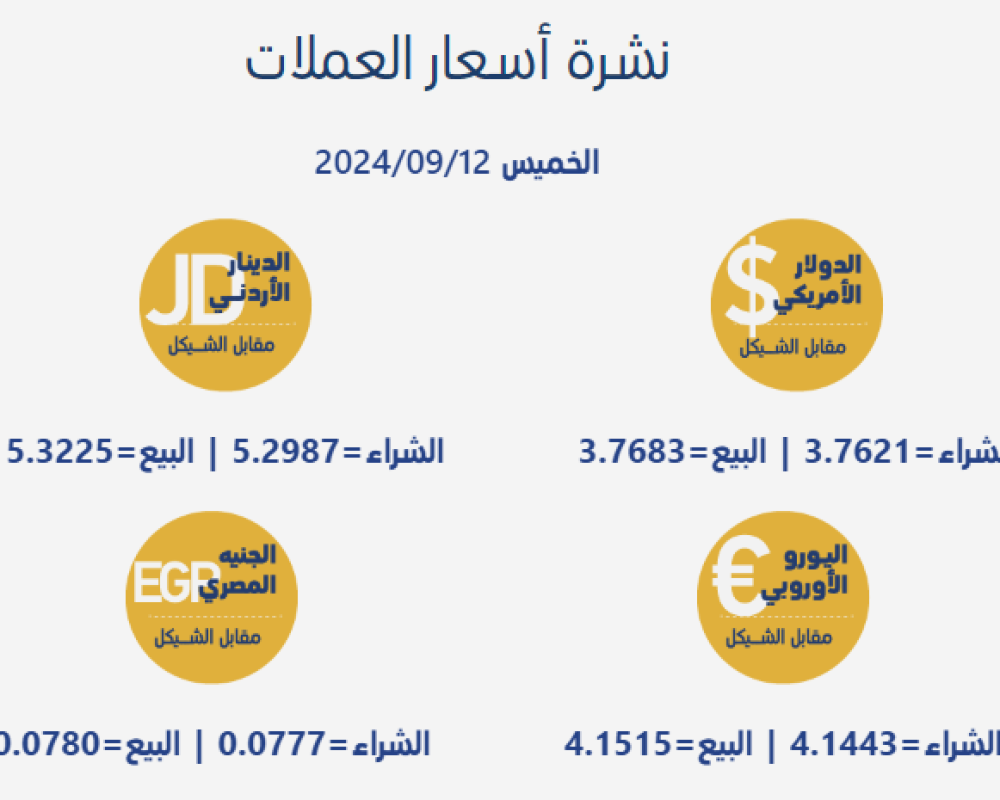 رام الله/PNN- جاءت أسعار صرف العملات مقابل الشيقل، اليوم الخميس، بحسب سلطة النقد الفلسطينية، على النحو التالي: