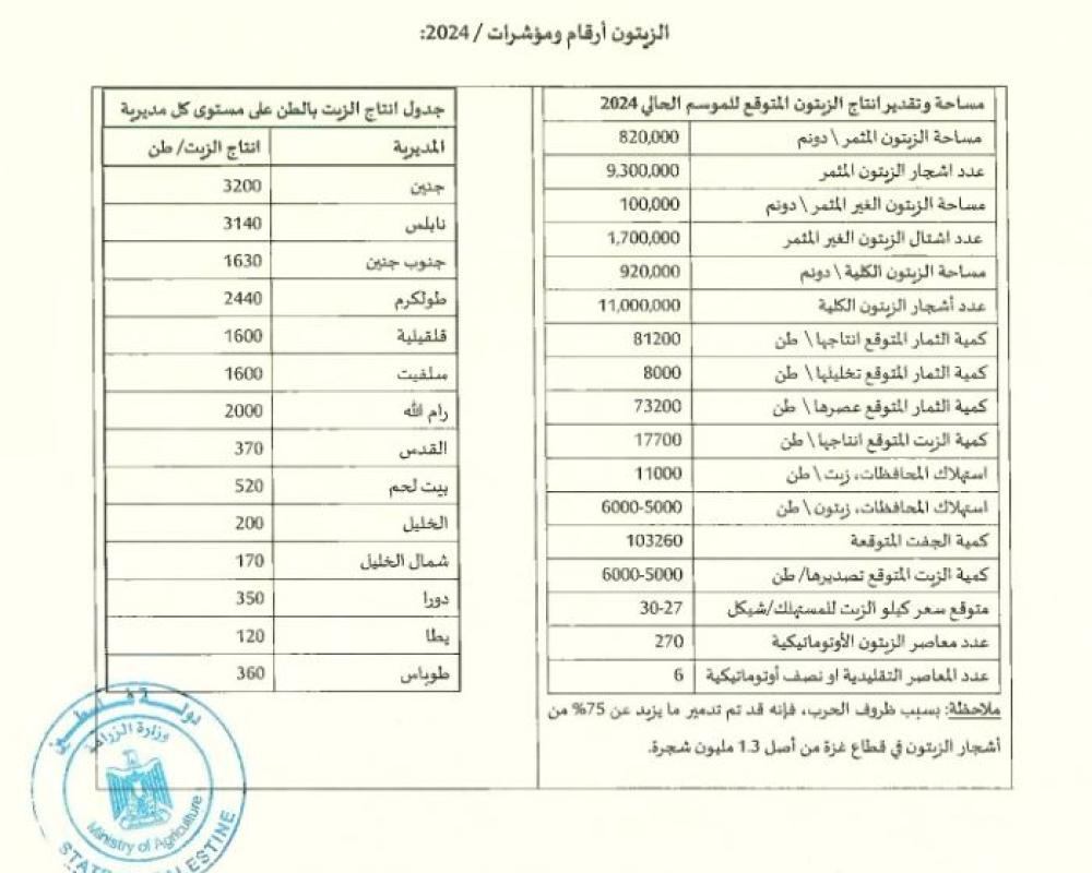 مرفق بيان توضيحي بخصوص قطاع الزيتون وتحديد موسم القطاف لهذا العا