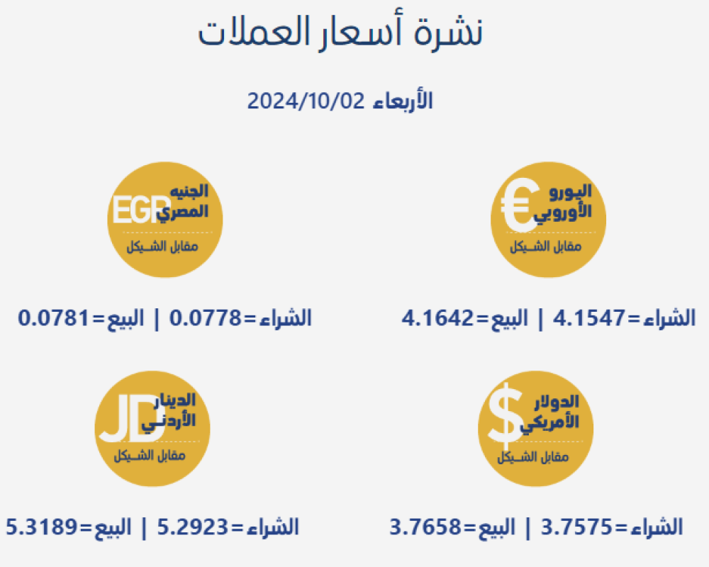 رام الله/PNN- جاءت أسعار صرف العملات مقابل الشيقل الإسرائيلي، اليوم الأربعاء، بحسب سلطة النقد الفلسطينية، على النحو التالي: