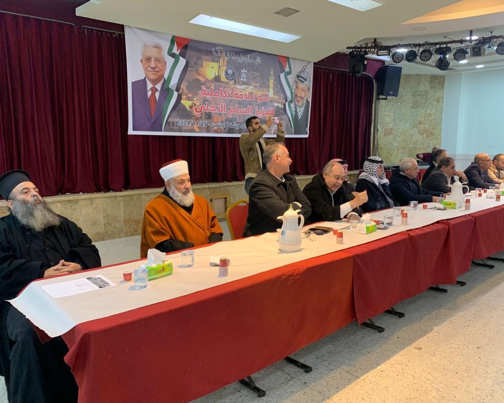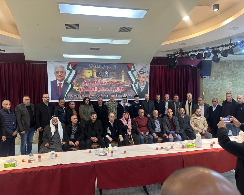 بيت لحم /PNN / عقدت لجان السلم الاهلي ومؤسسات وفعاليات محافظة بيت لحم وبمبادرة من مجموعة من الاسرى المحررين لقاء مجتمعي بعنوان نحو علاقة تكاملية لتعزيز السلم الاهلي حيث عقد اللقاء بحضور محافظ محافظة بيت لحم محمد طه ابو عليا ومدراء الاجهزة الامنية بالمحافظة.
