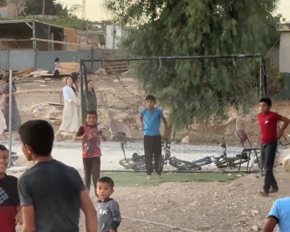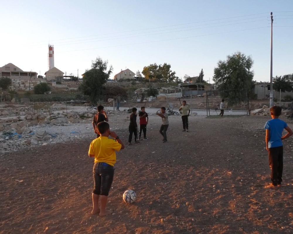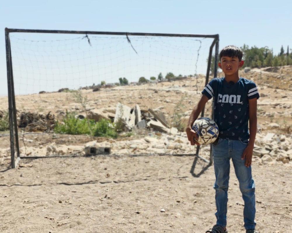 في خربة أم الخير جنوب مدينة الخليل تحديدا يعيش الأطفال حالة من الخوف والأمل في آن واحد، ويحلمون بأحلام بسيطة، مثل الاحتفاظ بملعبهم القريب من بوابة مستوطنة الكرمل وشارع استيطاني يستخدمه المستوطنون والمزارعون. الملعب، الذي يضم خمسة وستين طفلاً، يشكل الملاذ الوحيد لهم لممارسة هوايتهم المفضلة بلعب كرة القدم، إلا أنه مهدد بالإزالة والهدم من قبل قوات الاحتلال الإسرائيلي ومستوطنيه.