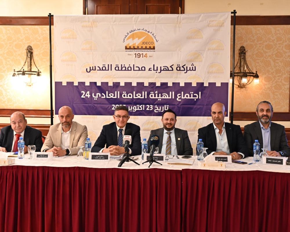 اريحا /PNN/ عقدت الهيئة العامة لشركة كهرباء محافظة القدس اجتماعها السنوي العادي للسنة المالية المنتهية في 31/12/2024 في مدينة أريحا، وبحضور السيد صايل علوي ممثلاً لمراقب الشركات, وسط أجواء من الفخر بالإنجازات التي حققتها الشركة على الصعيدين المالي والفني خلال عام 2024.