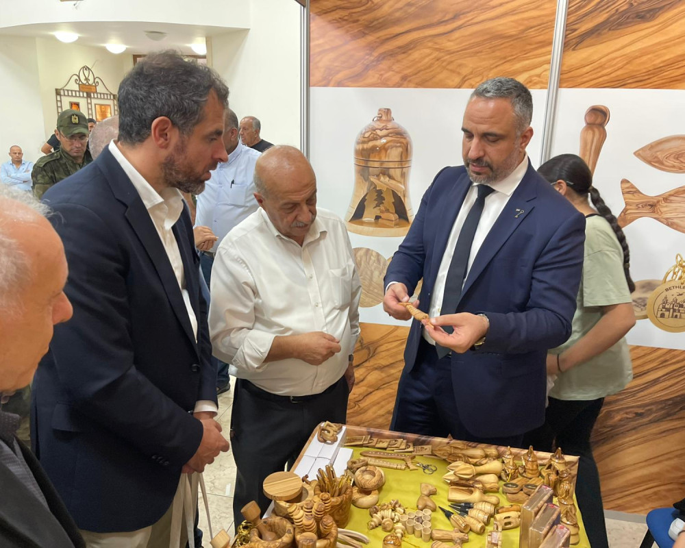 من جهته رحب رئيس بلدية بيت جالا الدكتور عيسى جعنينة بالحضور واشار الى اهمية شجرة الزيتون في الثقافة والمجتمع الفلسطيني وتطرق خلال جولته مع الدكتور حزبون ونائب السفير الاوروبي ريتزو والحضور في اقسام معرض سوق اليتون بكنيسة البشارة الى ما يعانيه المزارعون واصحاب الاراضي في بيت جالا نتيجة الاستيطان كما تطرق لتميز زيت زيتون المدينة وصناعاتها الزراعية معربا عن الامل بمزيد من الدعم الاوروبي.
