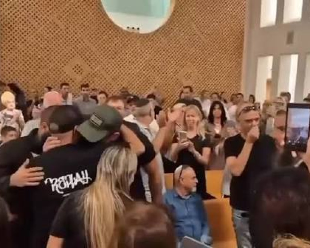 هل رأيتم مقطع الفيديو المتداول على مواقع التواصل الاجتماعي؟ البث المباشر من قاعة محكمة العدل العليا الاسرائيلية أعلى سلطة قضائية في اسرائيل، احتفال صاخب وحار يوم 12.11.2025 بالجنودالاسرائيليين الذين قاموا باغتصاب اسير فلسطيني في سجن سدي تيمان الدموي، هل رأيتم الاحتضان والترحاب بهم؟ الهتافات والتصفيق من الحضور بالمجرمين الذين دخلوا قاعة المحكمة.