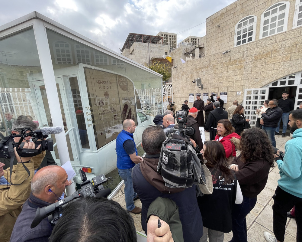 بيت لحم /PNN / اطلقت حراسة الاراضي المقدسة وكاريتاس العالم واللجنة الرئاسية العليا لشؤون الكنائس وفي فعالية حضرها شخصيات وطنية ودينية مشروع سيارة الامل حيث تم تحويل السيارة التي تجول فيها قداسة البابا الراحل فرنسيس خلال زيارته لبيت لحم بشوارع المدينة الى عيادة طبية متنقلة بهدف مساعدة الأطفال الفلسطينيين في غزة. الضفة والقدس في خطوة رمزية تحمل معاني التضامن والدعم للأطفال الفلسطينيين من جهة ورفض الاعتداء عليهم.