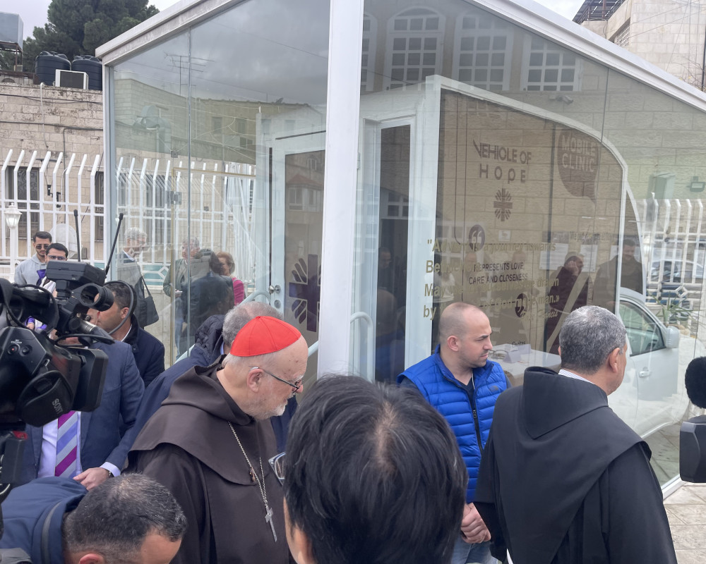بدوره ثمّن الدكتور رمزي خوري المبادرة التي تقوم على إعادة توظيف المركبة التي قدّمها الرئيس محمود عباس للرهبان الفرنسيسكان لاستخدامها من قبل البابا فرنسيس خلال زيارته التاريخية لفلسطين عام ٢٠١٤، وتحويلها اليوم إلى عيادة متنقلة تقدّم الرعاية الصحية الأولية للجرحى والمصابين من الأطفال، وتساهم في تحسين وصول الخدمات الطبية داخل قطاع غزة المحاصر، واضاف انها مبادرة تعبر عن عمق الرسالة المشتركة بين الكنيسة والشعب الفلسطيني، ورسالة احترام وتعاون وشراكة في حماية القيمة الروحية والتاريخية لهذه الارض التي انارت العالم.