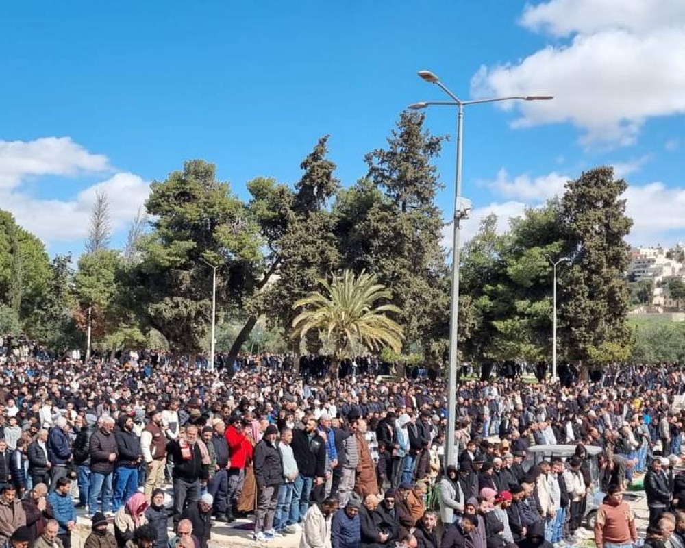 القدس / PNN/ أدى 100 ألف مصلٍ، صلاة الجمعة الثانية من شهر رمضان، في المسجد الأقصى المبارك، رغم تقييدات وإجراءات الاحتلال الإسرائيلي المشددة.