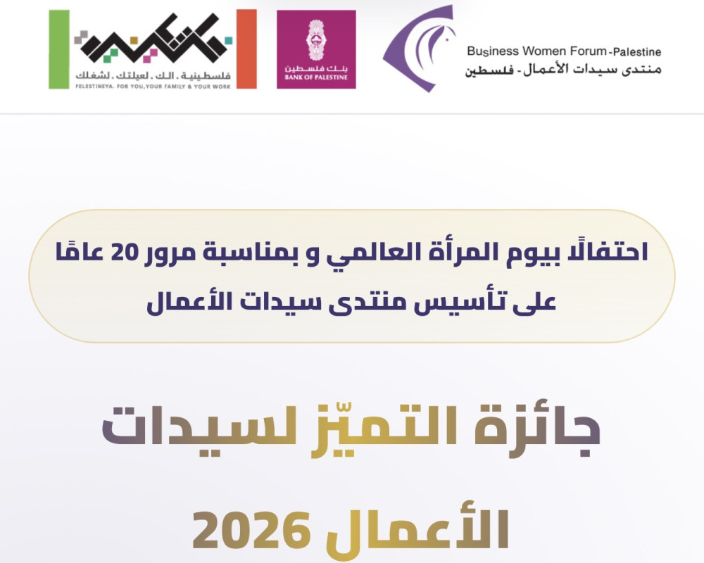 رام الله /PNN/ اطلق منتدى سيدات الاعمال وبالشراكة مع بنك فلسطين “جائزة التميّز لسيدات الأعمال” كمبادرة نوعية يقودها المنتدى مع بنك فلسطين استنادًا إلى خبرتهما في دعم وتمكين الرياديات الفلسطينيات في مختلف السياقات الاقتصادية والاجتماعية.