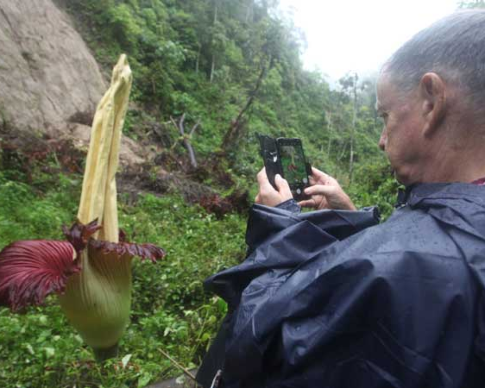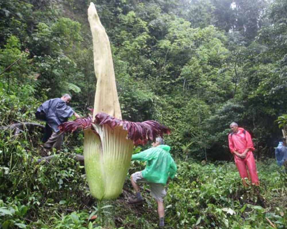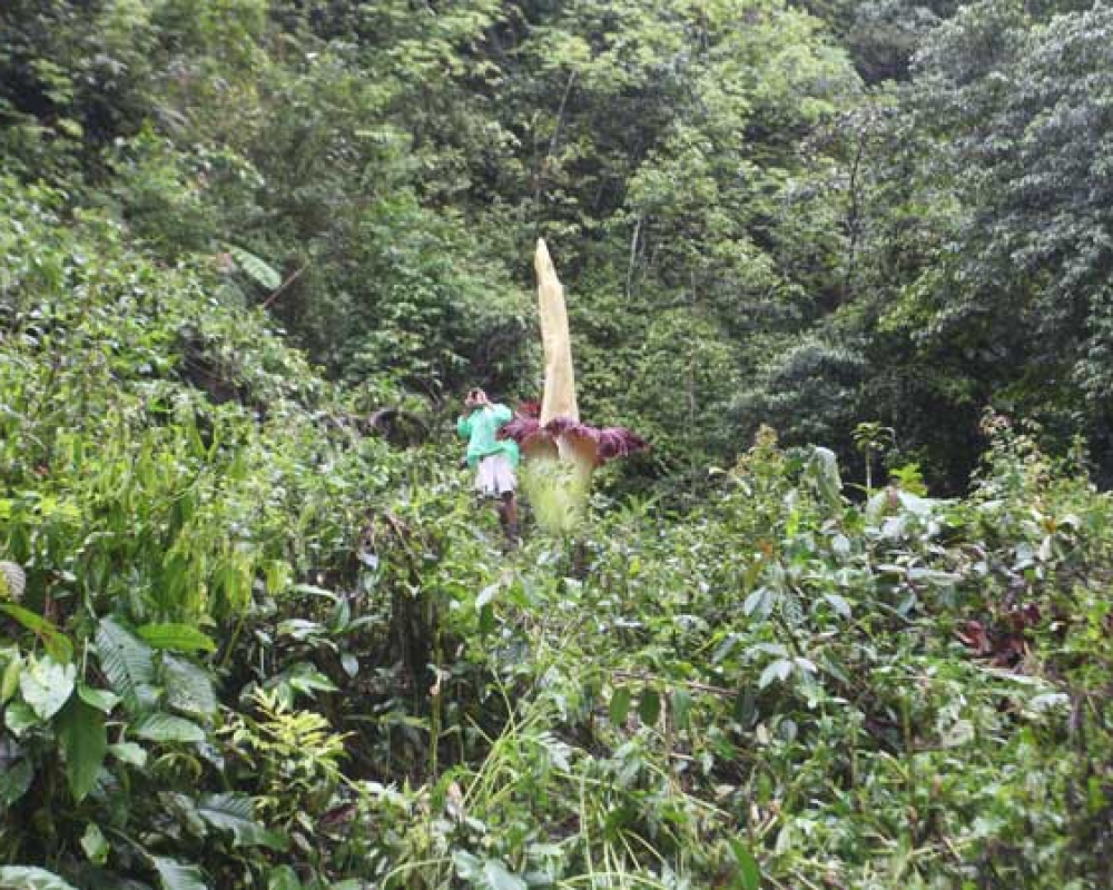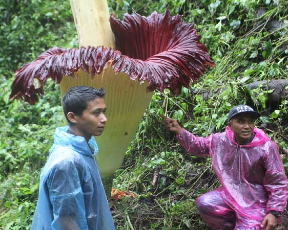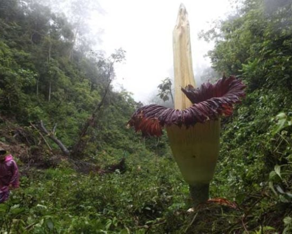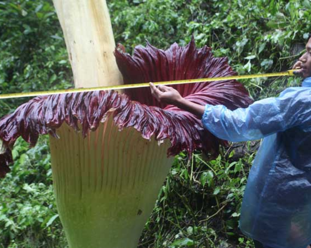 ويتميز هذا النبات بأنه ينتج أضخم زهرة في العالم حيث يصل قطر الزهرة لمتر ووزنها لـ11 كغم، وتفوح منها رائحة اللحم المتحلل ولذلك يطلق عليها الأهالي اسم “زهرة الجثة”.