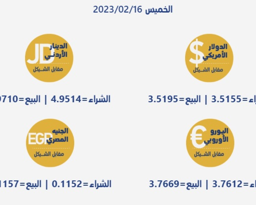 رام الله/PNN- جاءت أسعار العملات مقابل الشيقل الإسرائيلي، اليوم الخميس، حسب سلطة النقد، على النحو التالي: