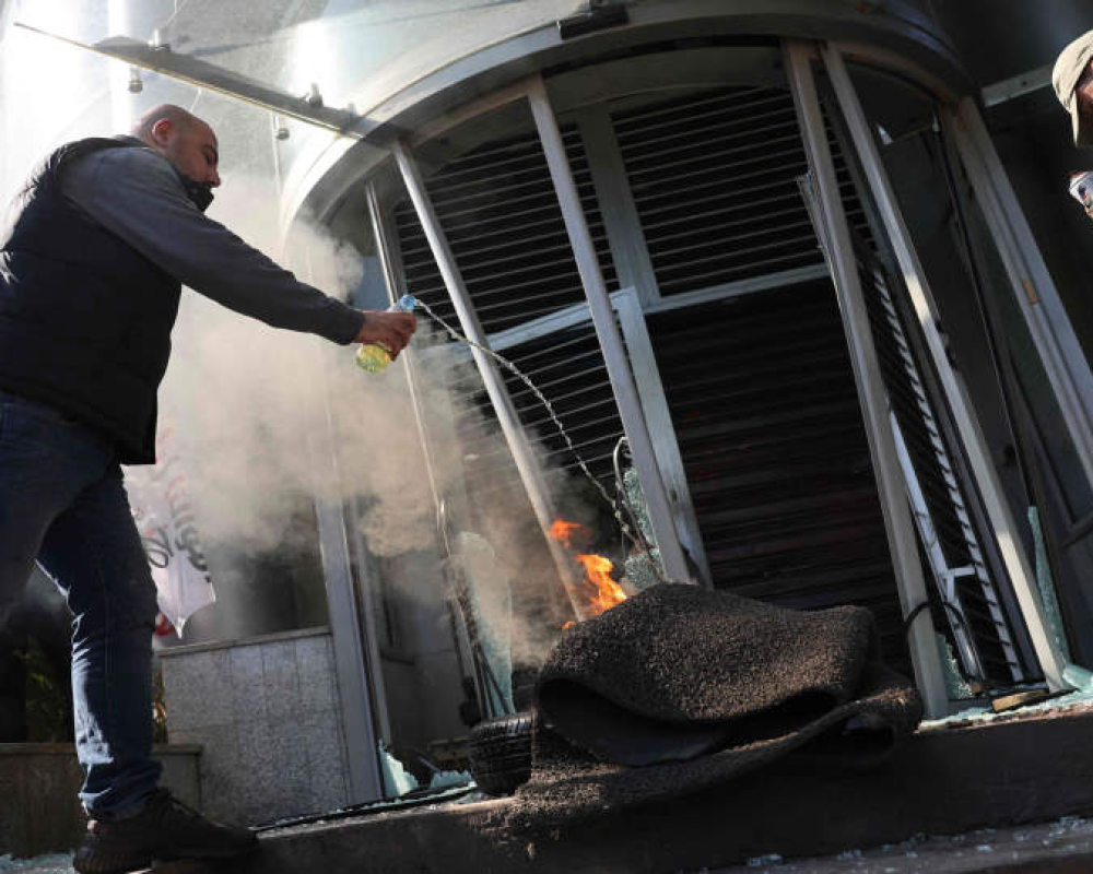 بيروت/PNN- حطم عشرات المحتجين في لبنان فروعا لبنوك تجارية في حي بالعاصمة بيروت الخميس وأضرموا فيها النار كما قطعوا بعض الطرق اعتراضا على القيود غير الرسمية المفروضة على عمليات السحب والقائمة منذ سنوات إضافة إلى الأوضاع الاقتصادية الآخذة في التدهور بسرعة.