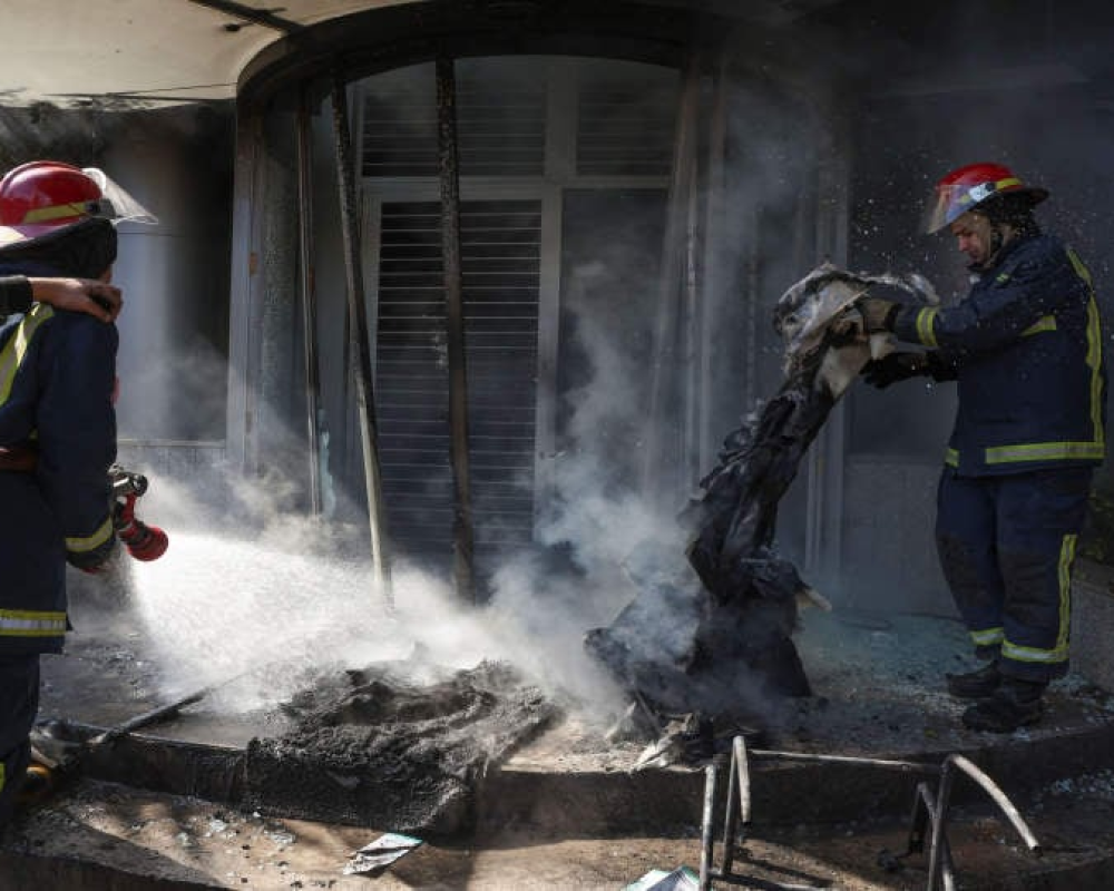 واحترق بنك في حي بدارو وكان رجال إطفاء يرشونه بالمياه بينما وقف أفراد من شرطة مكافحة الشغب على مقربة منهم وهم يحملون الدروع.