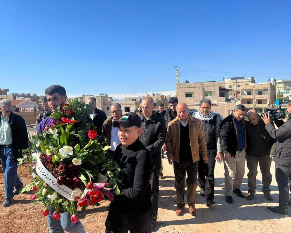 وتفقد د. ابو هولي والوفد المرافق وقيادة فصائل المنظمة أزقة وساحات المخيّم، للإطلاع على المشاريع التي قامت بتنفيذها دائرة شؤون اللاجئين في الفترة السابقة من محطة تكرير المياه وزيارة روضة بيسان والإستماع إلى الحاجات والأولويات التي تحتاجها الروضة، ومن ثم توجهوا إلى زيارة مقر الهلال الاحمر الفلسطيني ومقبرة المخيّم وتم وضع إكليل من الزهور على النصب التذكاري للشهداء مع قراءة الفاتحة، وشرح القائمون على مشروع المقبرة آلية ترتيبها وإعادة تنظيمها.