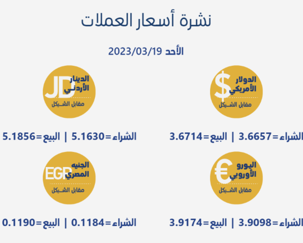 رام الله/PNN- جاءت أسعار العملات مقابل الشيقل الإسرائيلي، اليوم الاحد، حسب سلطة النقد، على النحو التالي: