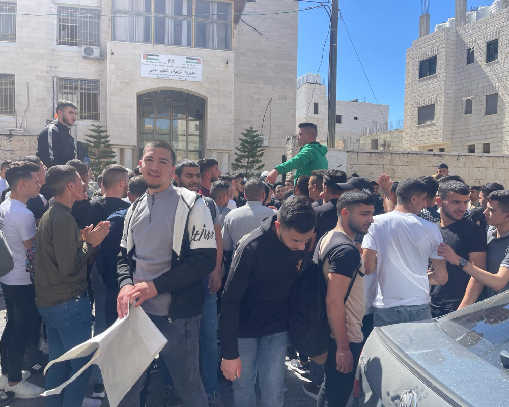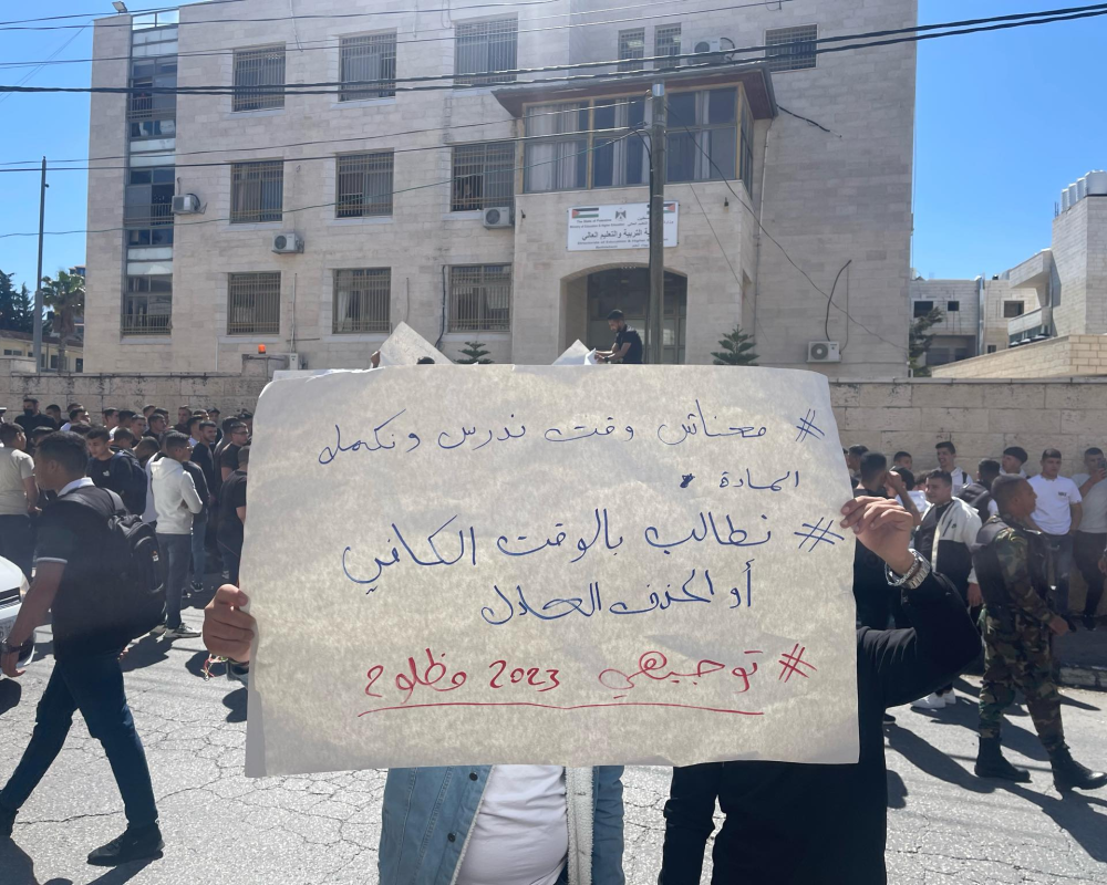 بيت لحم/PNN- نظم المئات من طلبة التوجيهي في محافظة بيت لحم وعدد من المحافظات الفلسطينية، اليوم الخميس، مسيرات ووقفات إحتجاجية أمام مقار مديريات التربية والتعليم للمطالبة بإعطائهم مزيدا من الوقت ما بين الفصل الدراسي وإمتحان الثانوية العامة، كما طالبوا بحذف مواد من الفصل الثاني حتى يكونوا قادرين على التقدم للامتحان.