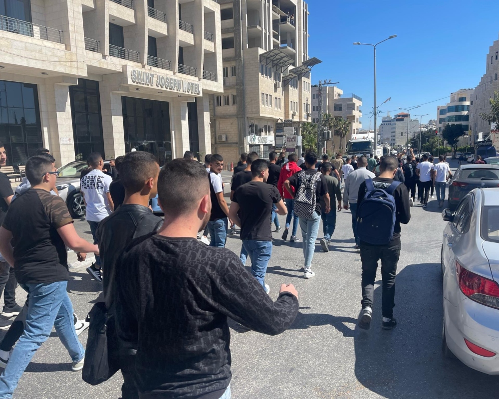 وسارت المسيرة الطلابية من منطقة باب الزقاق في مدينة بيت لحم باتجاه مقر التربية والتعليم حيث رفع الطلبة يافطات وشعارات تطالب وزارة التربية والتعليم بتلبية مطالبهم الخاصة بالحذف وفتح الفرصة لوقت اطول للدراسة ما بين امتحان التوجيهي والعطلة المقررة بعد انتهاء العام الدراسي.