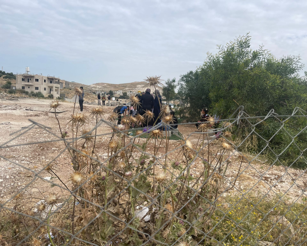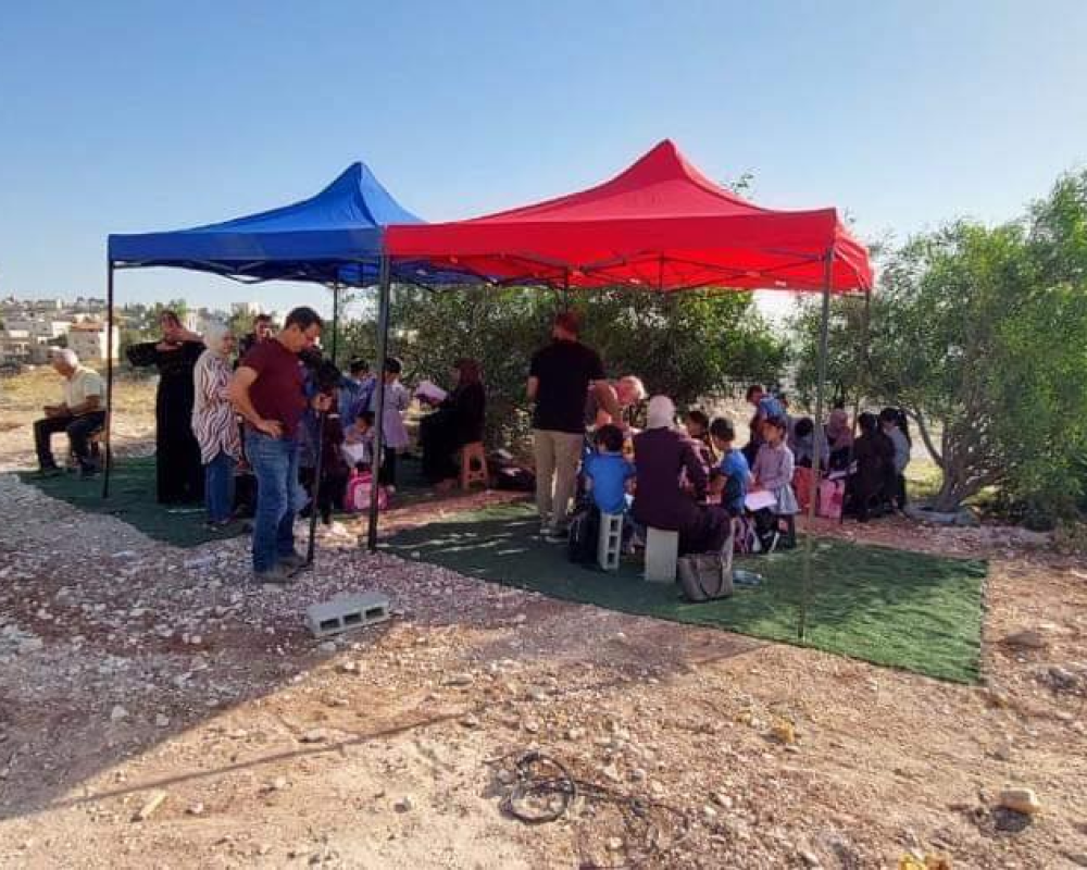 بيت لحم/خاص PNN- تحت أشعة الشمس وبين أشواك الطبيعة والحشرات وبقايا الركام الذي خلفه جيش الاحتلال، بعد أن هدم مدرسة “التحدي 5” وصادر محتوياتها، والخيم التي وضعت بعد الهدم ليترك الطلبة في قرية جب الذيب يدرسون في العراء، في مشهد للهدم والتهجير للنكبة الفلسطينية المستمرة منذ 57 عاما.