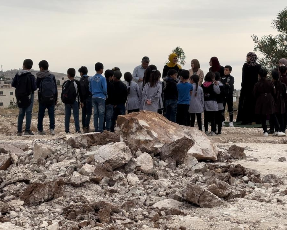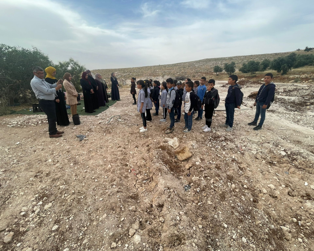 وأكد أن قانون حقوق الإنسان كفل للفلسطينيين حق التعليم، وبالتالي فــ من حقوقنا أن يكون هناك مدرسة، مبينا أن المنطقة ينقصها مدرسة، مشيرا إلى