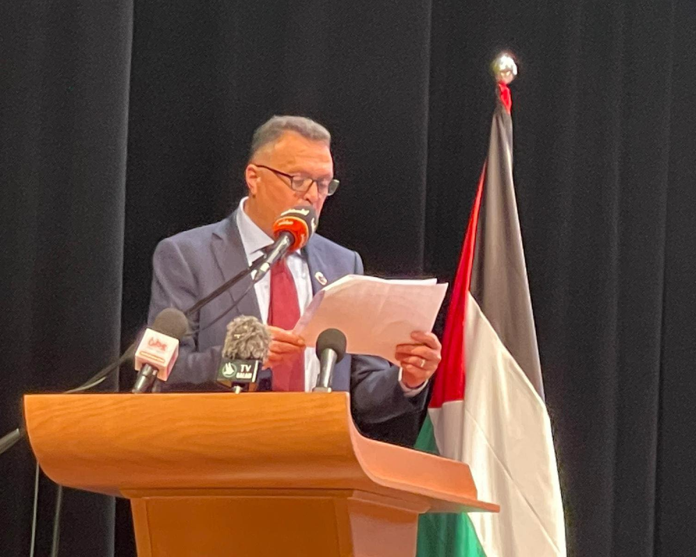 اشار الى اندحار كل الاحتلالات وبقاء فلسطين مشيرا الى ان اقامة إسرائيل جاء على انقاض فلسطين حيث قتل اعلها ودمرت قراها وقتل الفلسطينيون مشيرا الى ان مخيمات اللجوء في سوريا ولينان والاردن شواهد على الجريمة كما ان القتل والقنص الاسرائيلي متواصلا في مخيمات ومدن وقرى الضفة حيث يسعى الاحتلال لقتل الحقيقة عندما قتلوا شيرين ابو عاقلة وياسر مرتجى واعدا ذويهم بمواصلة القيادة الفلسطينية بالسعي لاحقاق العدل اتجاه الشهداء وعائلاتهم.